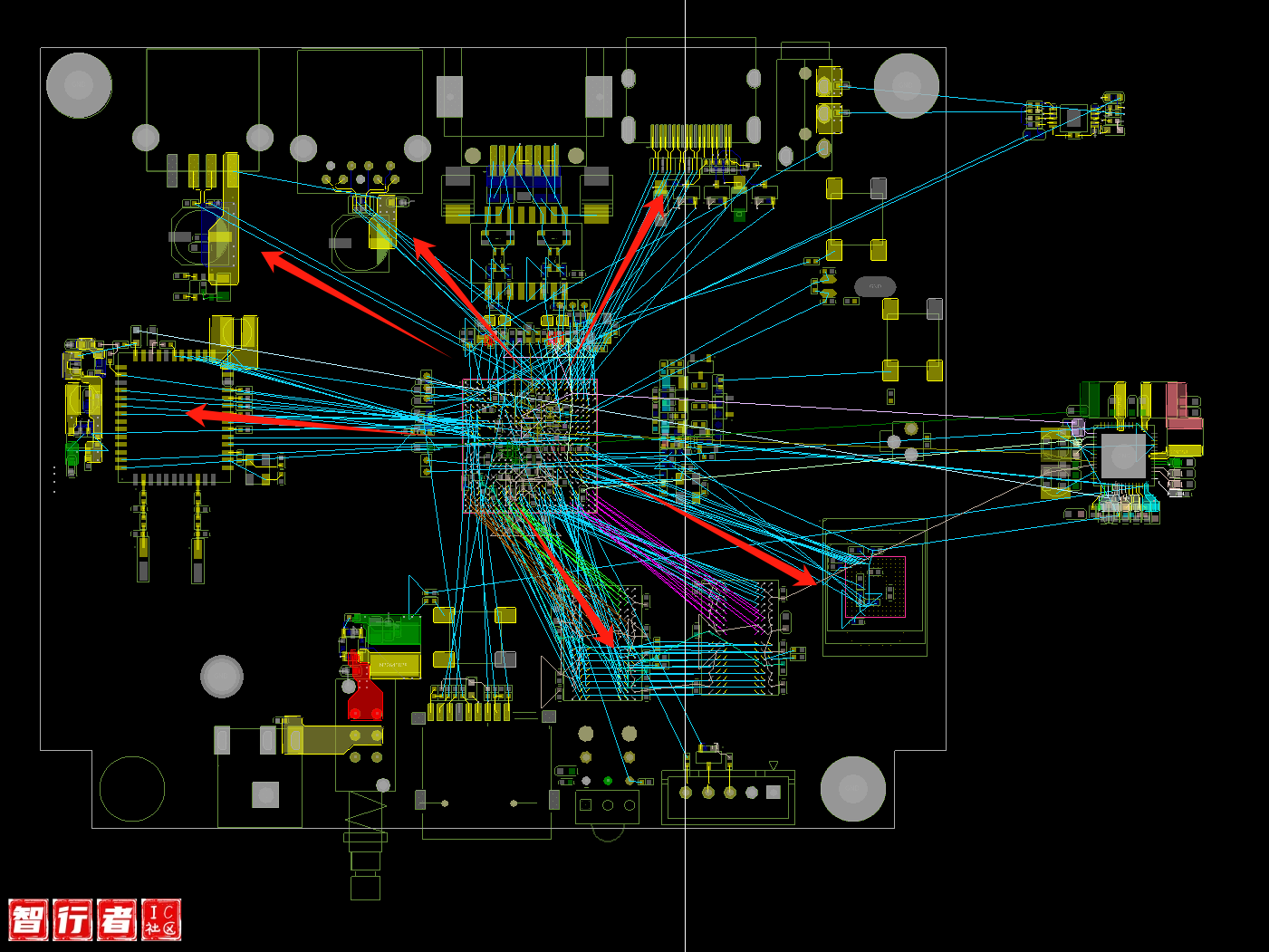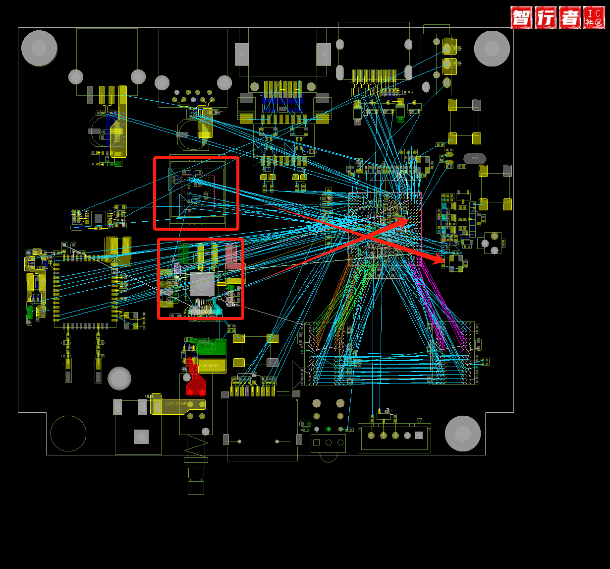 天线π型滤波 DDR 扇出之后再放电容,直接放在管脚背面,扇出没有空间 3. 电源和地,在规则管理器里设置线宽之后,再进行扇出 晶振匹配器件放在主通道上 整体器件位置除固……